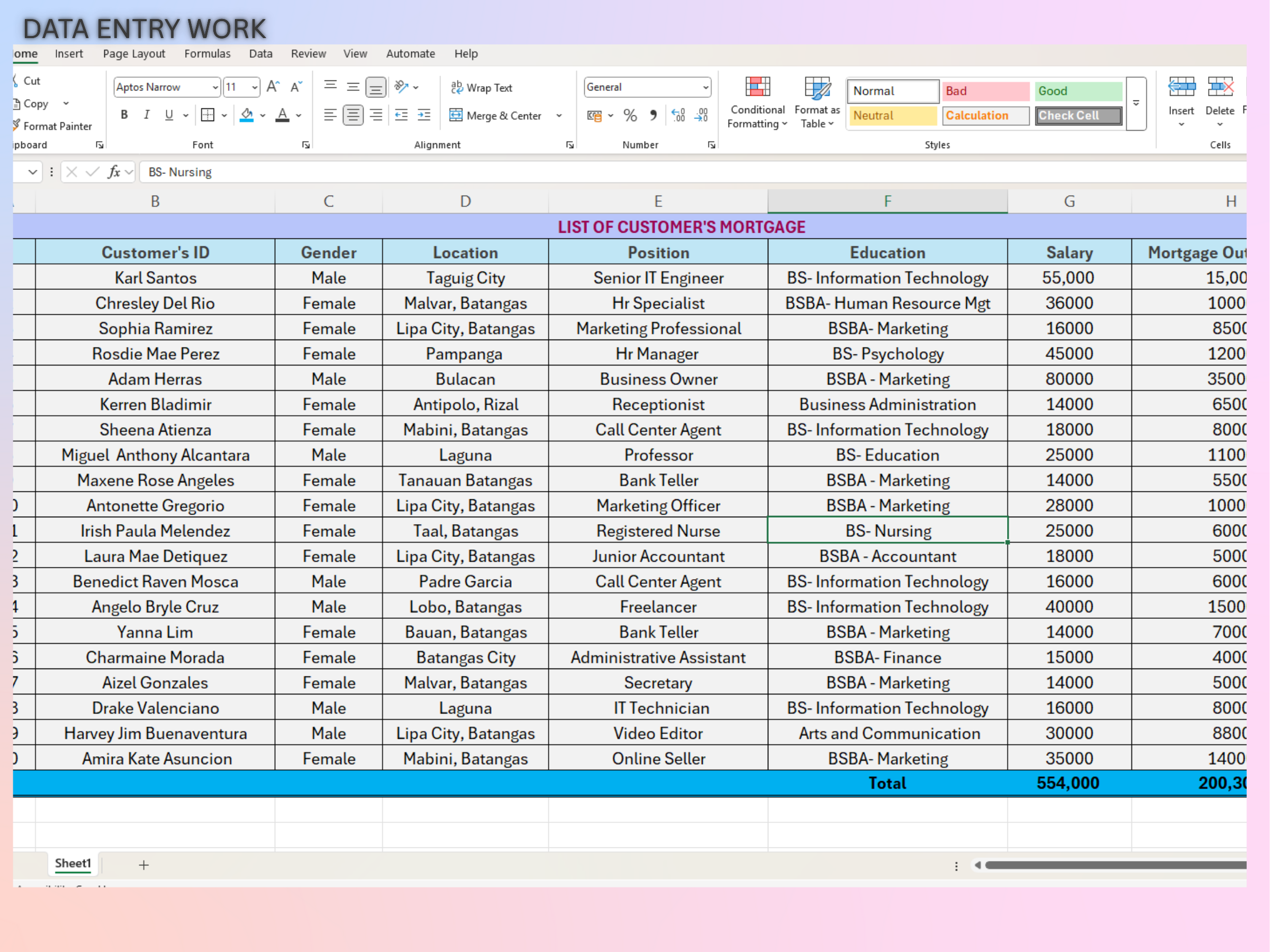 DATA ENTRY- MS EXCEL