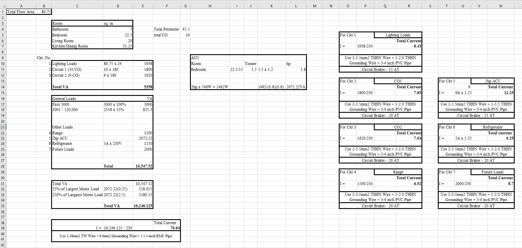 I was required to calculate a total current based on the given floor dimension.