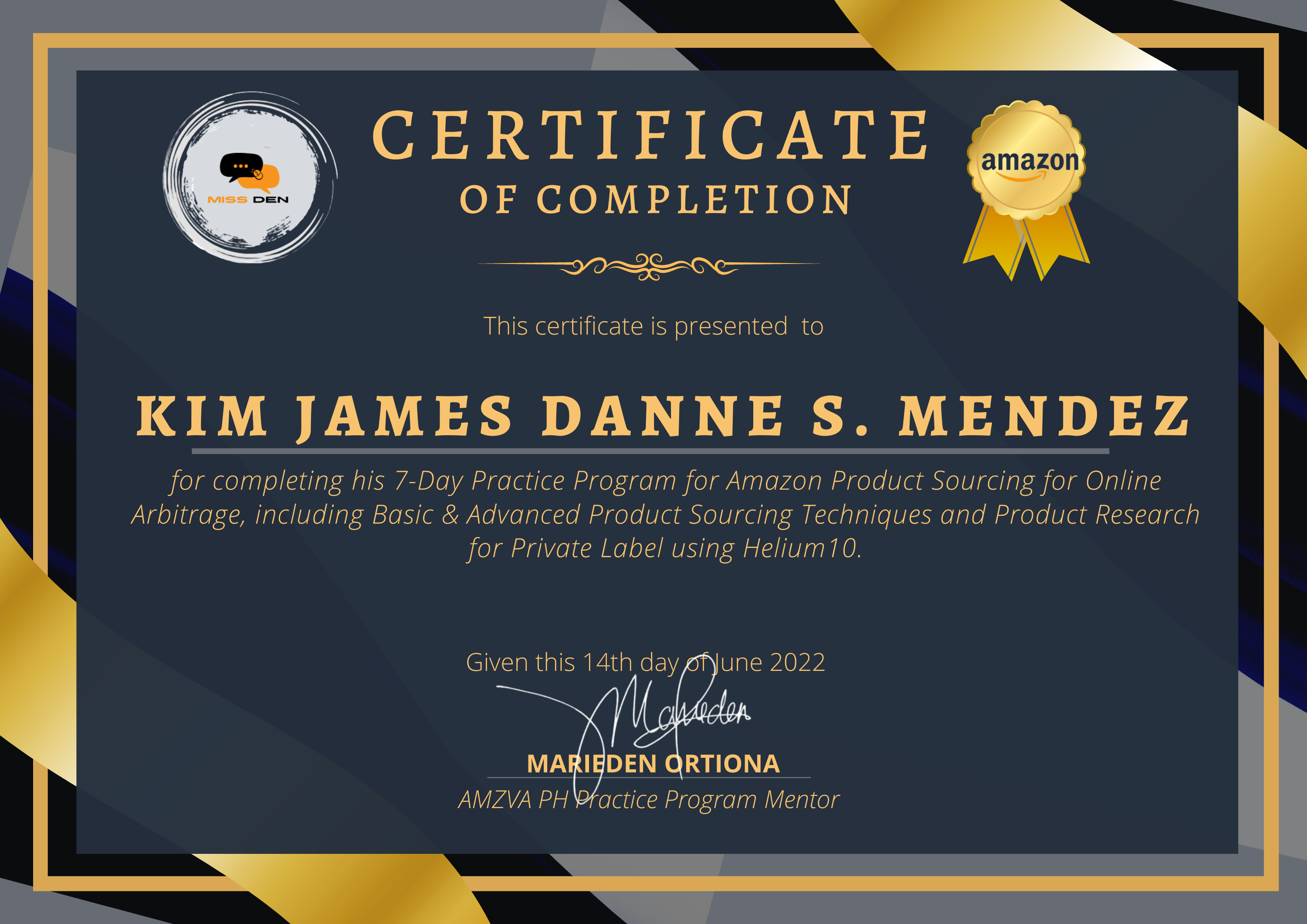 A 7 day training composed of Product Sourcing and Product Researching. We were taught how to use tools like Keepa, Helium10, FBA Calculator and many more.