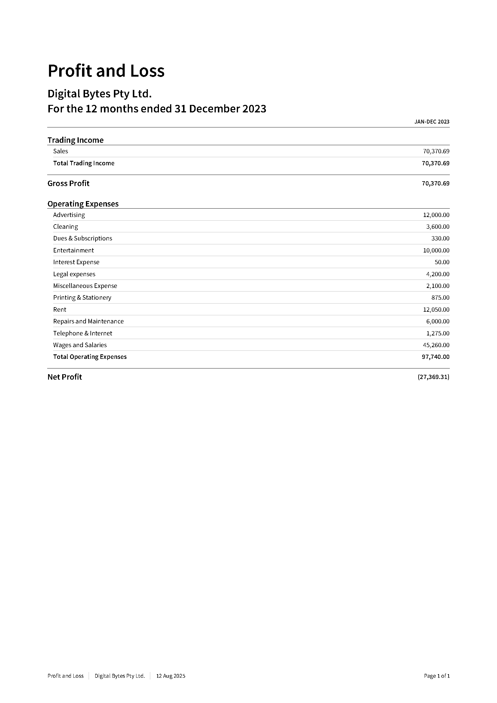 Bookkeeping - Profit and Loss