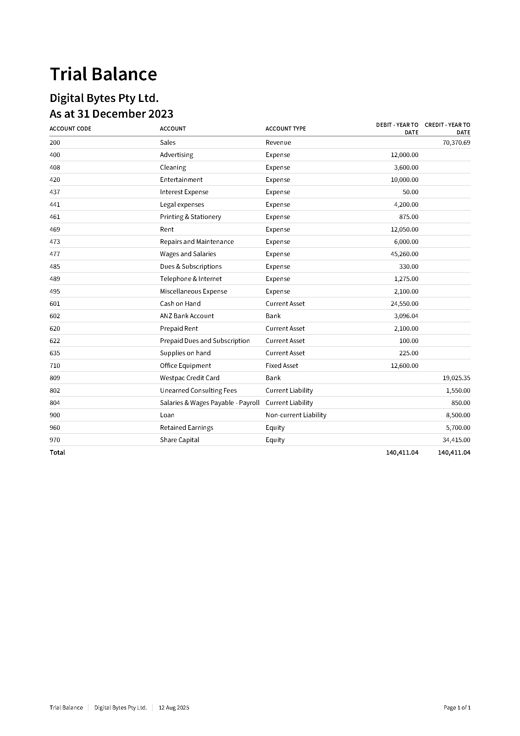 Bookkeeping - Trial Balance