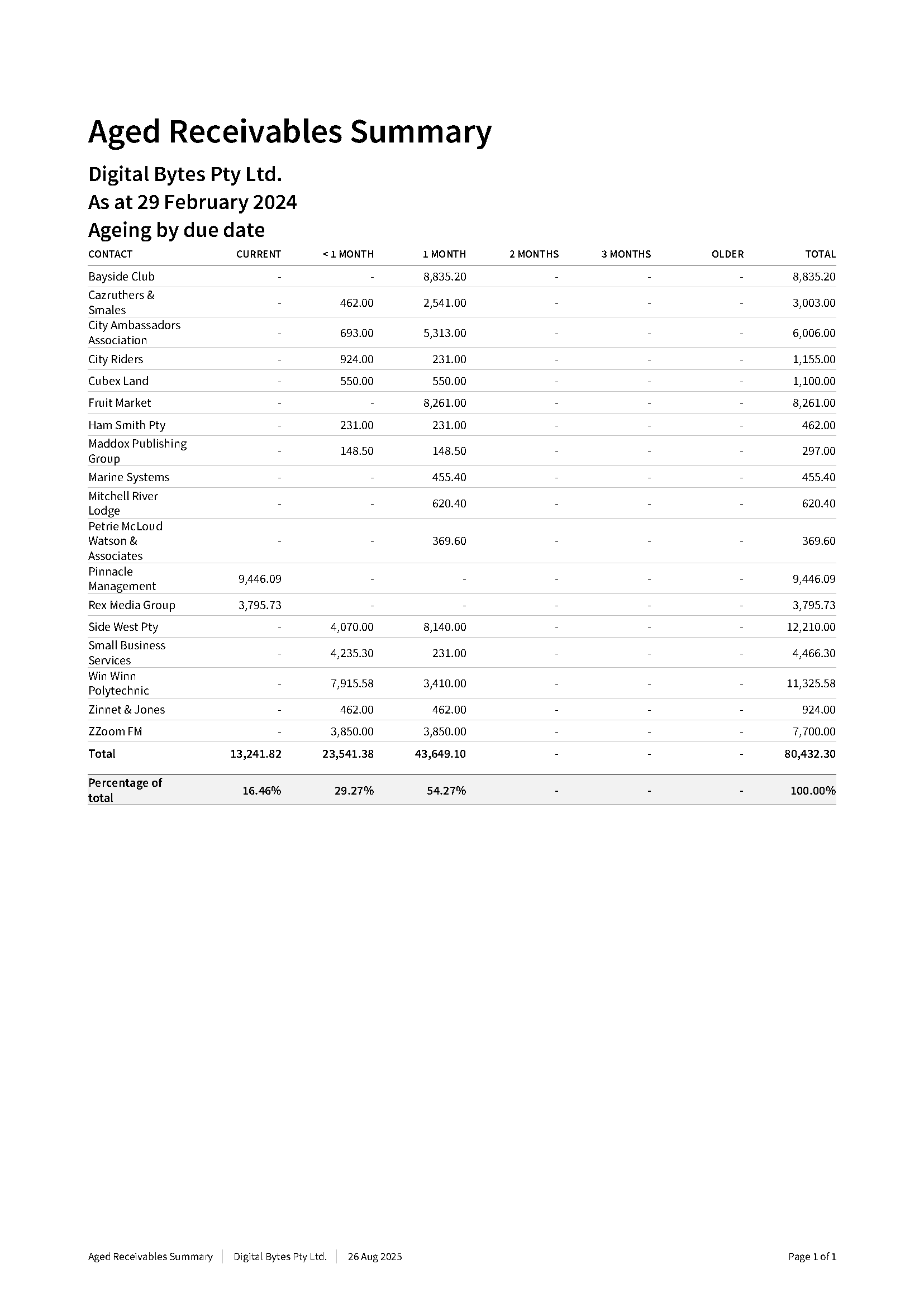 Aged Receivables Summary Report