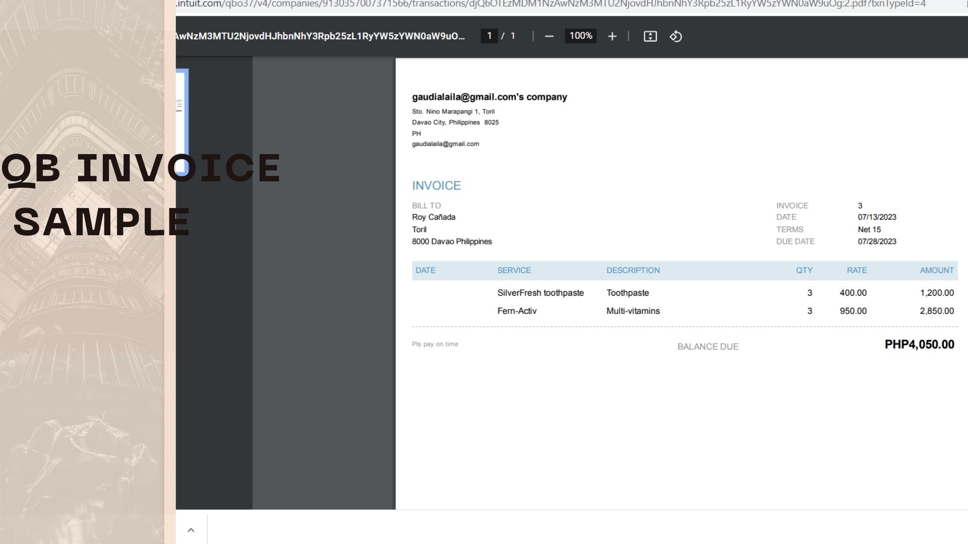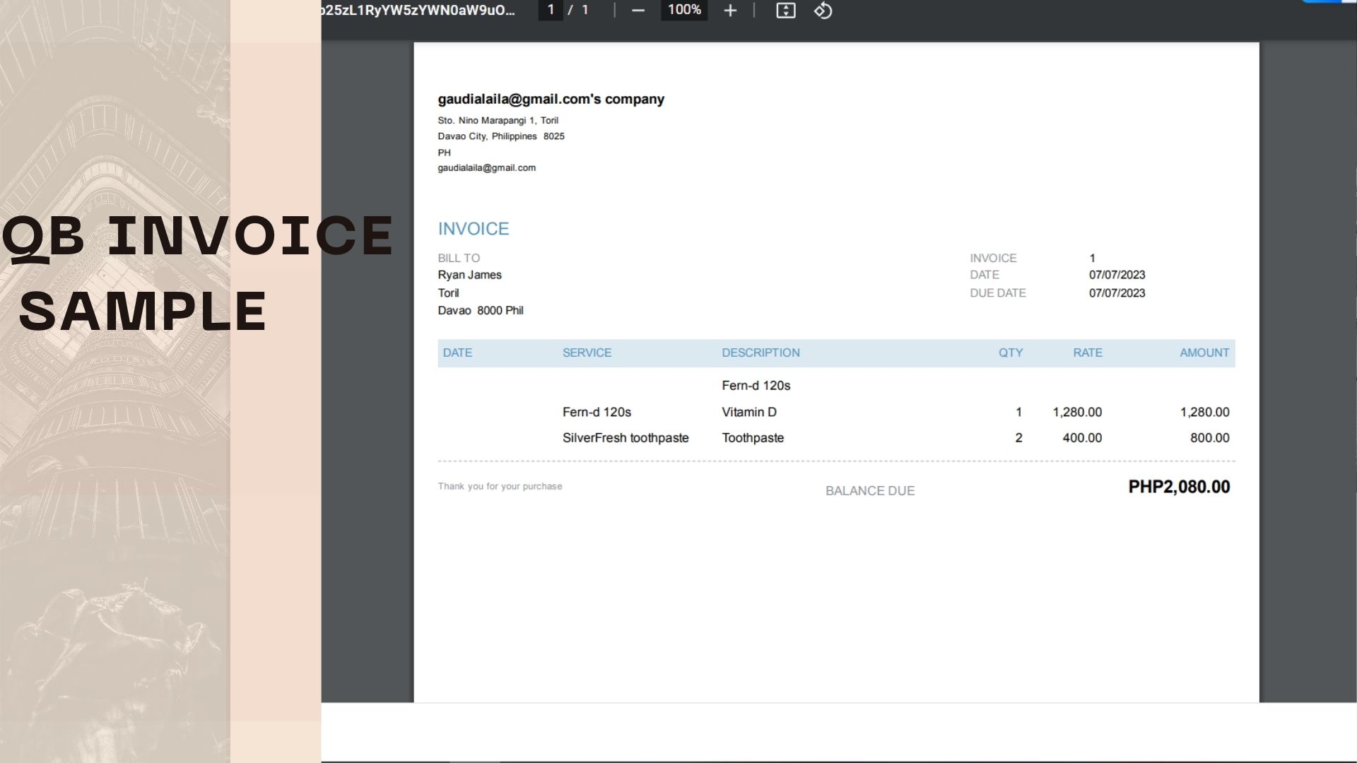 Quickbook Sample Invoice