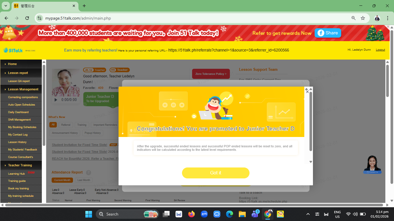 Promoted to a higher level in 51Talk