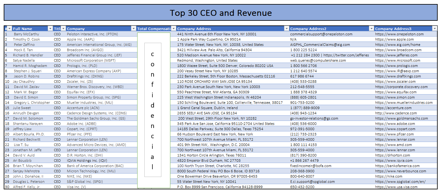Top 30 CEO Sample Work