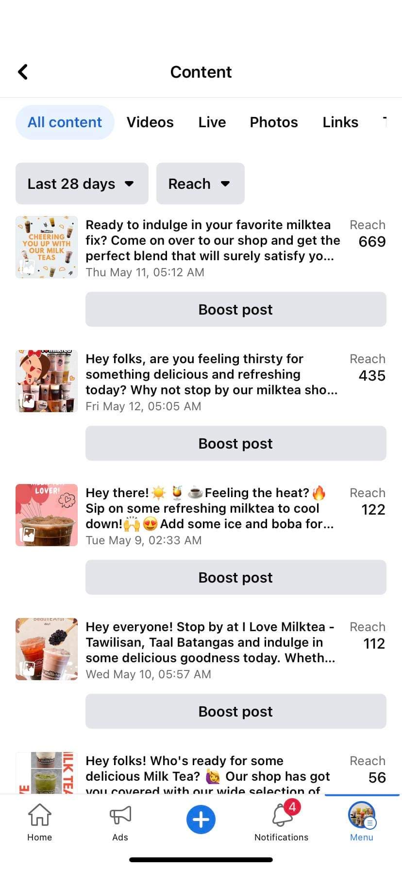 Social Media Management of I Love Milktea Store