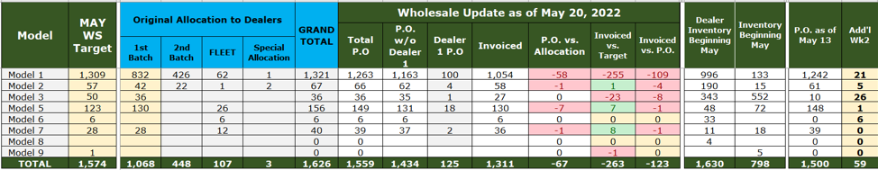 Wholesale Update per model