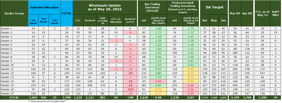 Wholesale Update per Dealer group