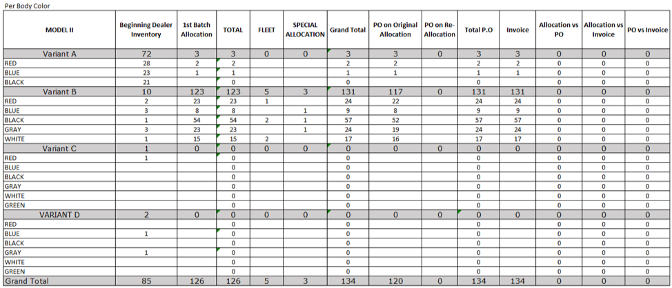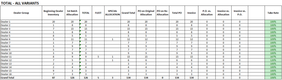 Dealer Inventory per variant