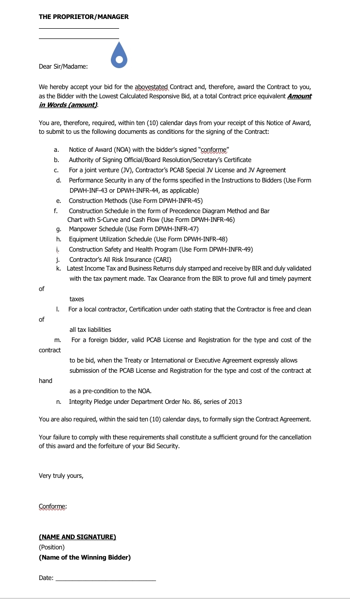 Notice of Award