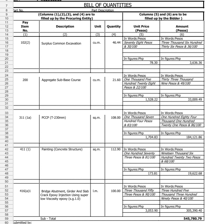 Bill of Quantities