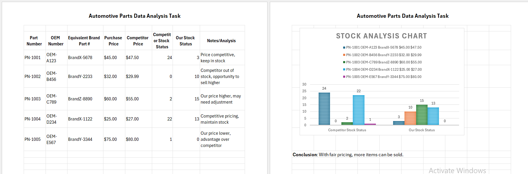 Automative Parts Data Analysis Task