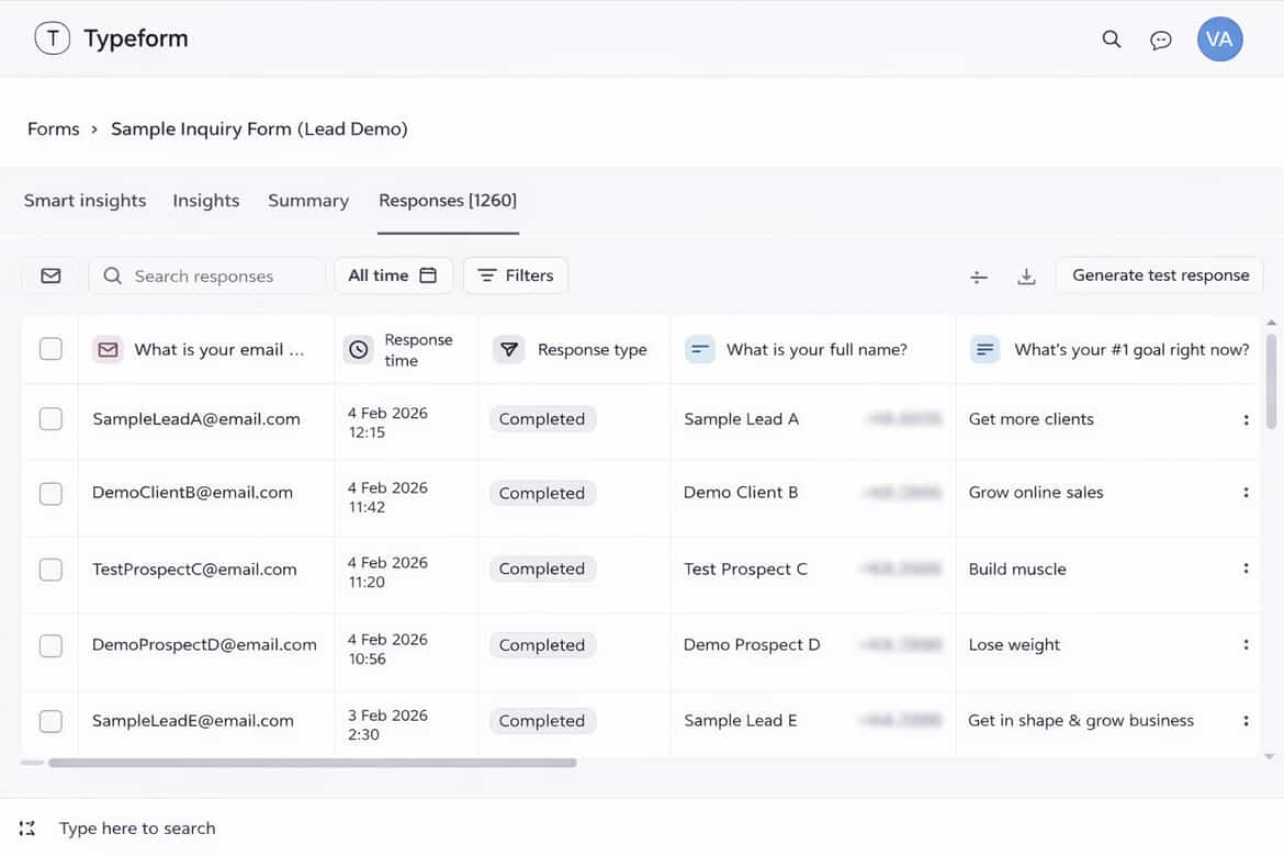 This sample project highlights my experience managing inbound lead submissions through Typeform. I monitored form responses, organized prospect information, reviewed inquiry details, and ensured accurate lead tracking for smooth follow-ups and scheduling support. This workflow helped maintain an efficient and structured intake process for new prospects.