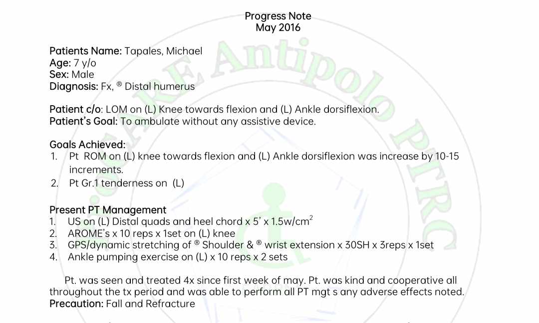 These are sample notes I made while working with an actual patient during my internship.