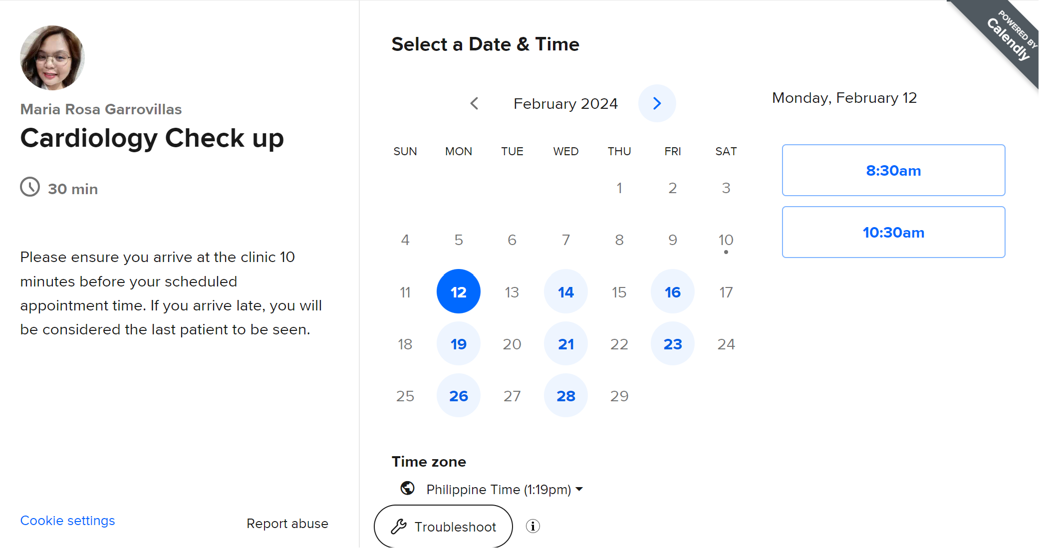 Appointment schedule in Calendly
