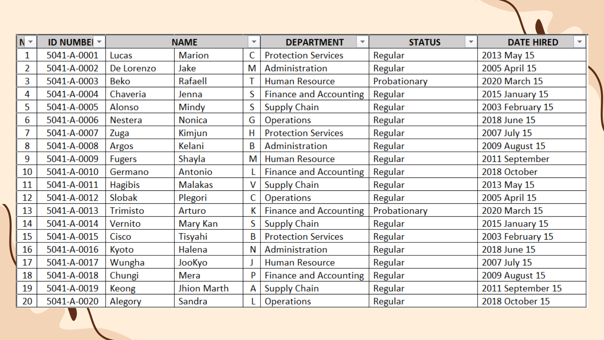 Sample inventory and record-keeping documentation
