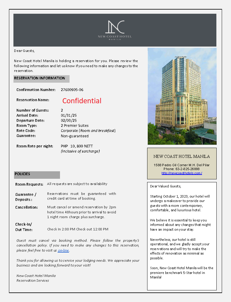 Request of arrange hotel booking