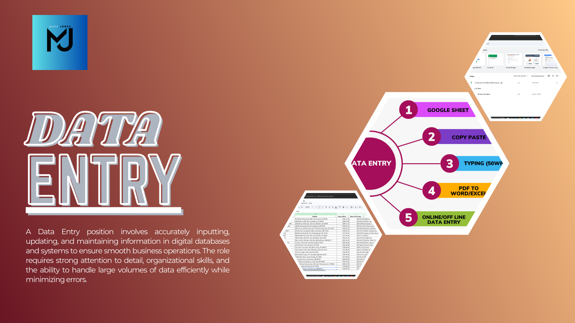 A Data Entry position involves accurately inputting, updating, and maintaining information in digital databases and systems to ensure smooth business operations. The role requires strong attention to detail, organizational skills, and the ability to handle large volumes of data efficiently while minimizing errors. A Data Entry specialist is responsible for verifying information, cross-checking records, and ensuring data confidentiality. Proficiency in computer applications, particularly spreadsheets and word processing tools, is essential. This position plays a key part in supporting administrative and operational tasks, contributing to the overall accuracy and reliability of a company’s information management.