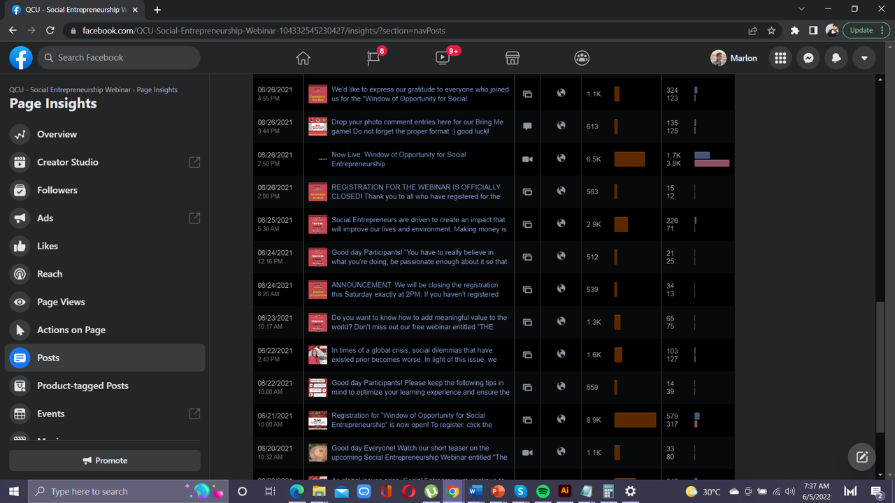 Facebook Page activities