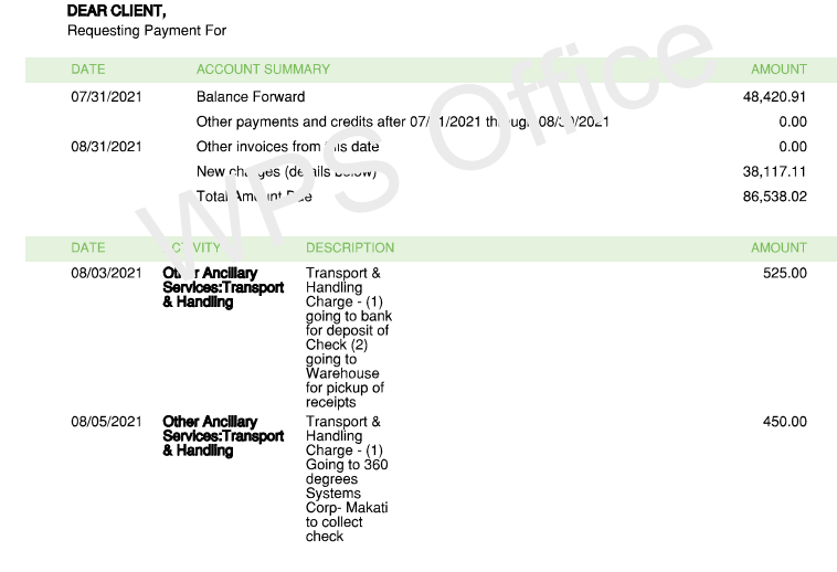 The photo shows the invoice billed to client for accounting services done. This is sent also to the email for proper tracking of trails for follow up purposes if necessary.