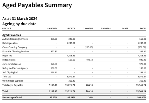 Aged Payables Summary