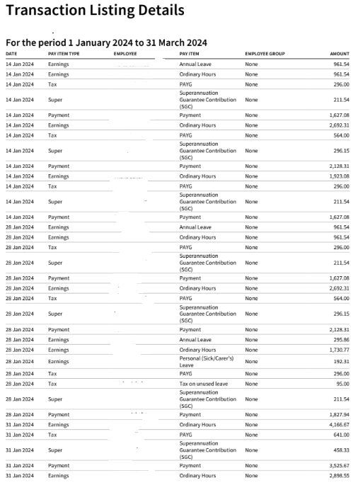 Transaction Listing Details