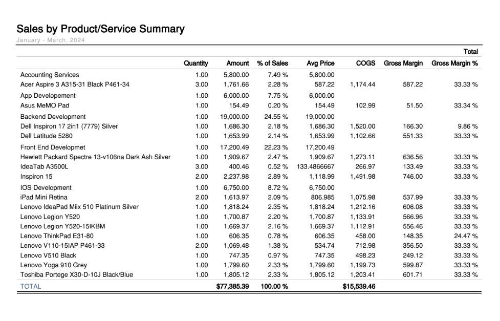 Sales by Product