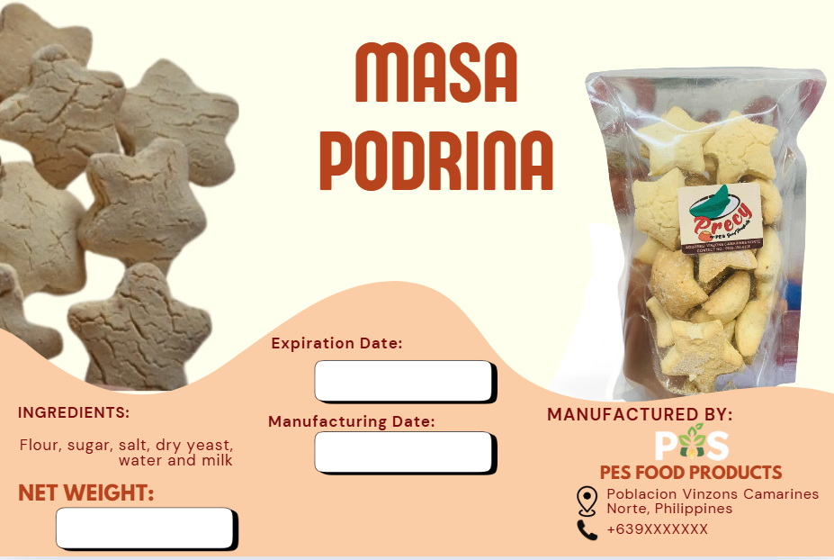 This product label was designed in Canva for a Masa Podrida pastry, focusing on a warm, inviting, and artisanal aesthetic that reflects the product’s homemade quality. The design balances clear product information with visual appeal, using thoughtful typography, color coordination, and layout structure to create a clean and professional label.