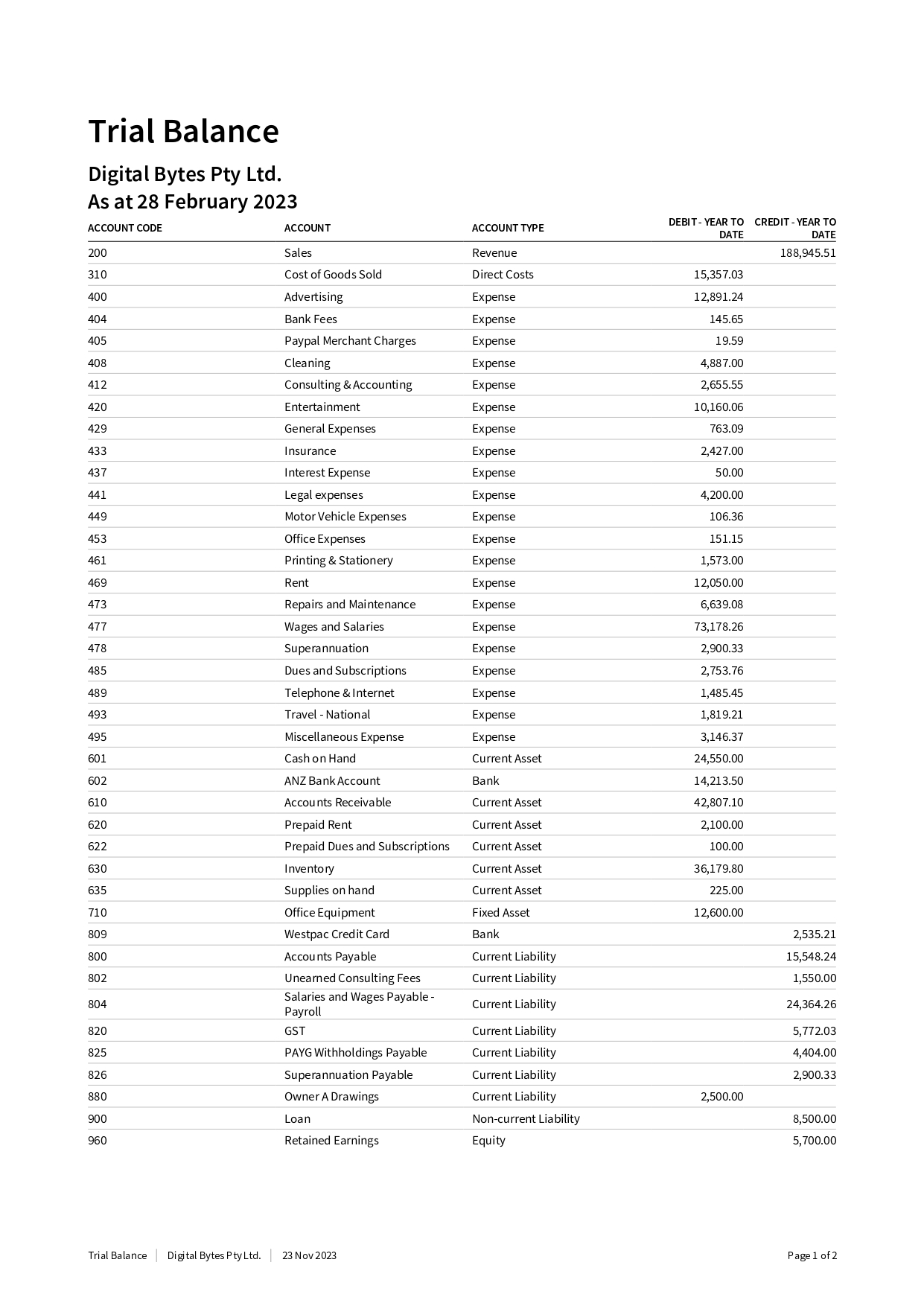 Sample Trial Balance 2
