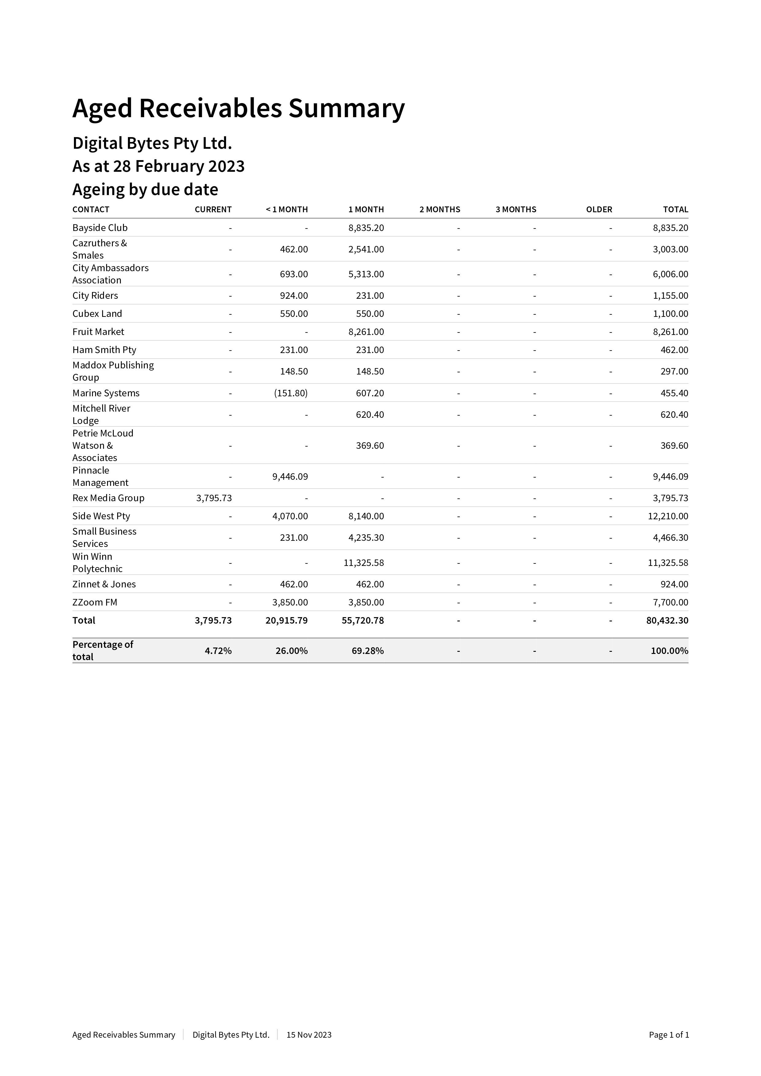Sample work_Aged Receivable Summary