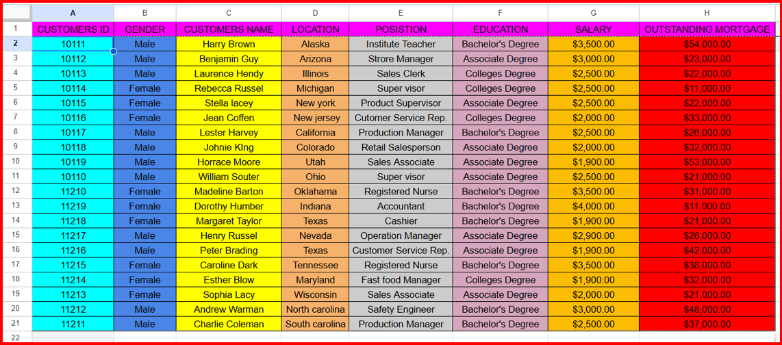 List of customers Mortage