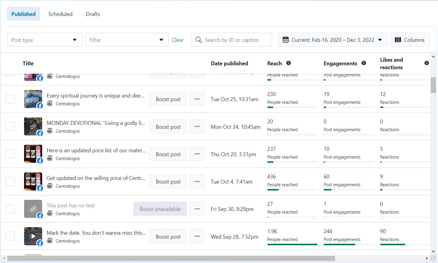 Published Facebook post
