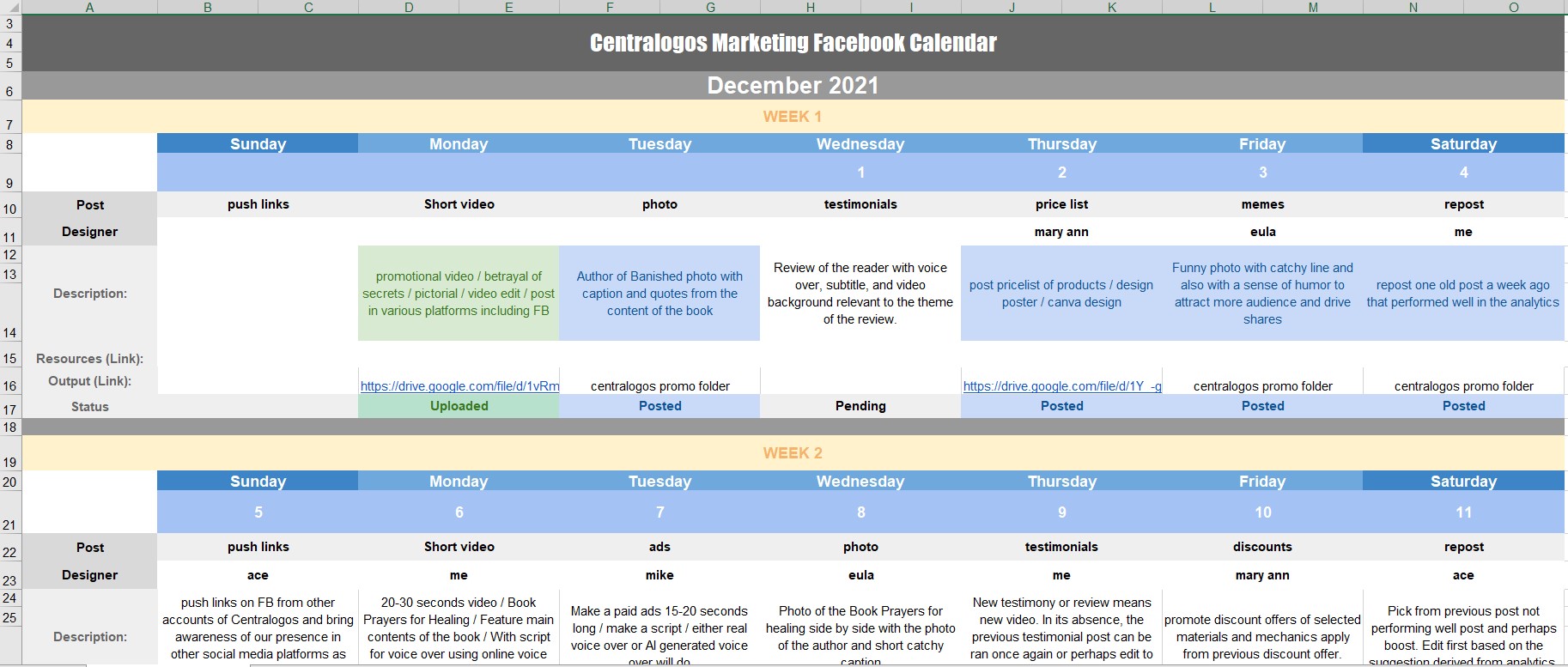 Facebook Post weekly planner