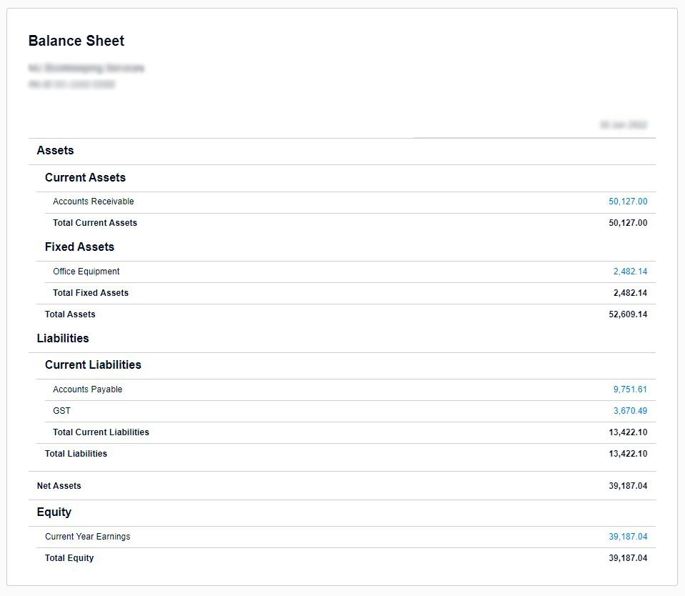 Bookkeeping Xero Balance Sheet Sample