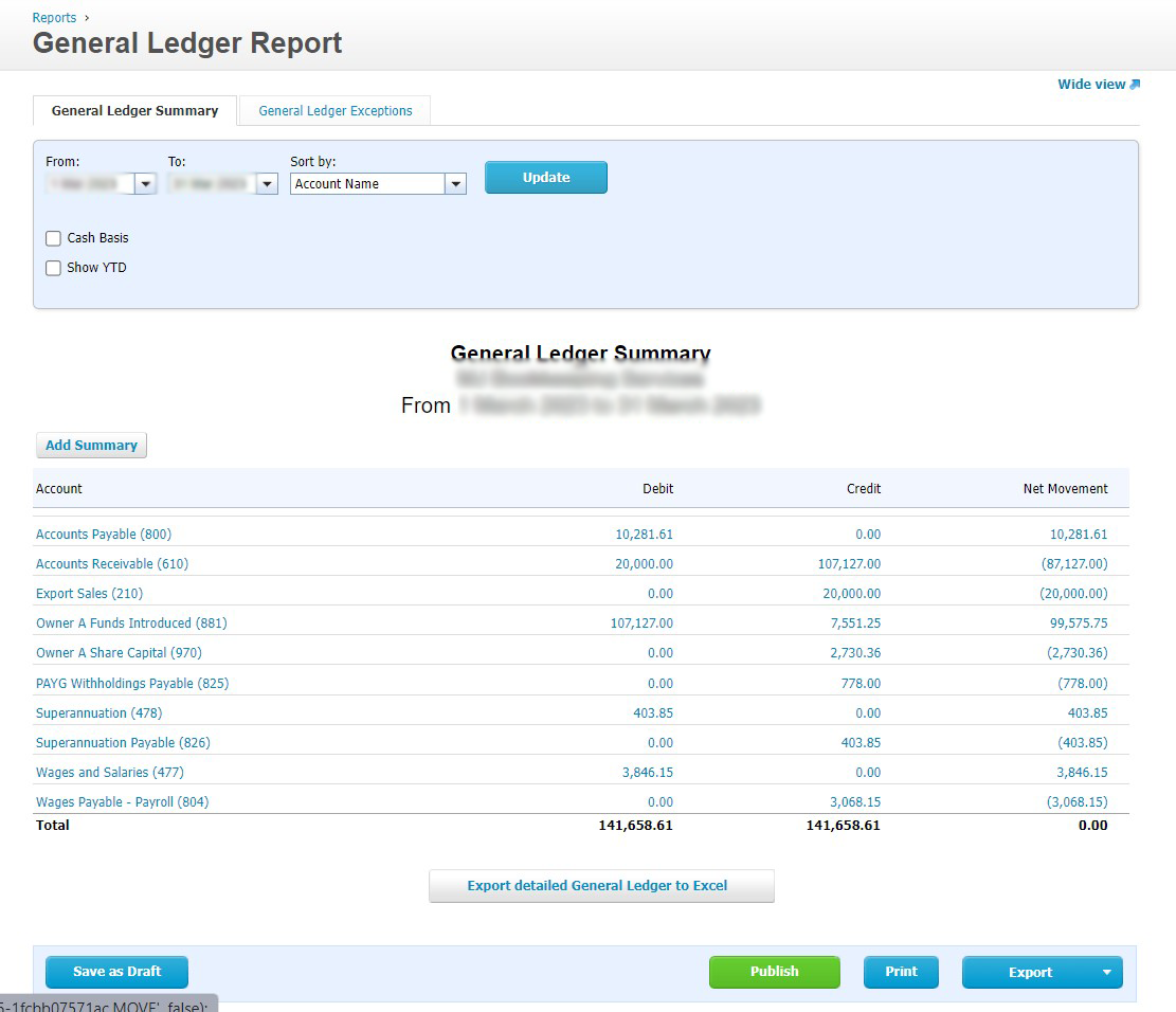 Bookkeeping Xero General Ledger Sample