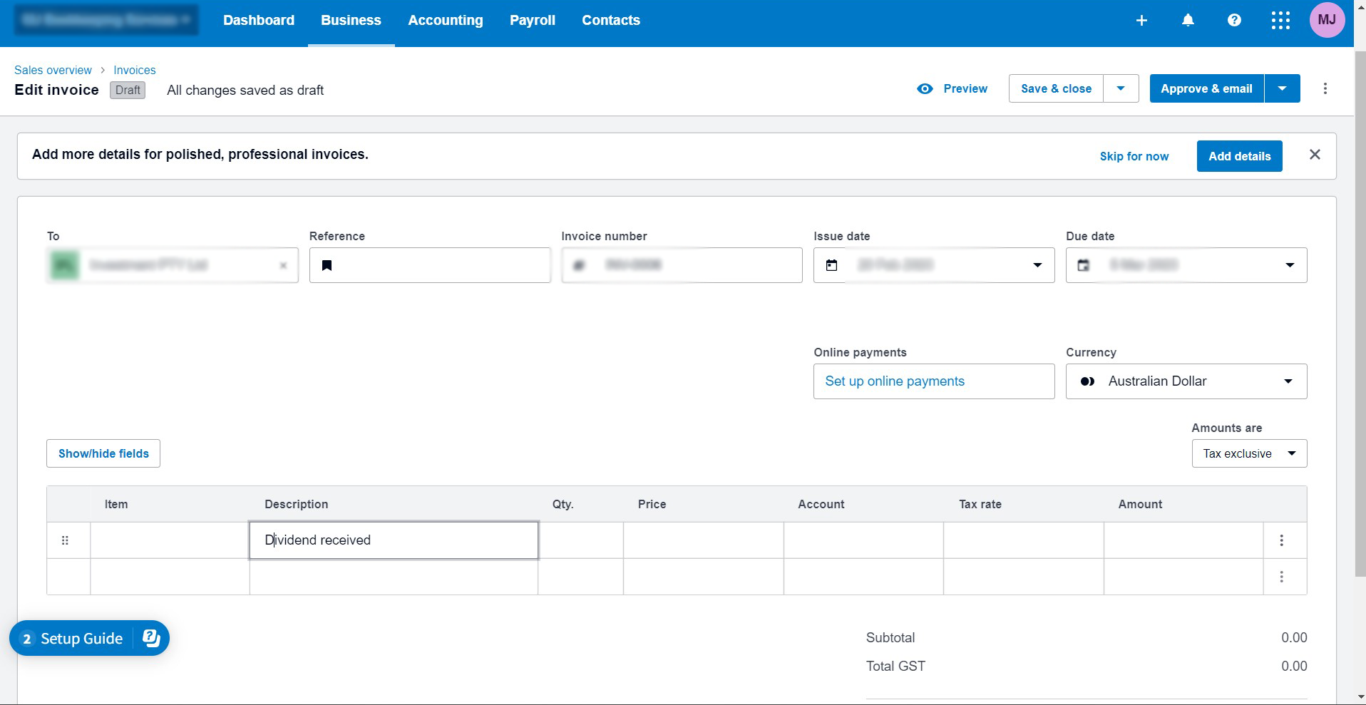 Bookkeeping Xero Invoicing Sample