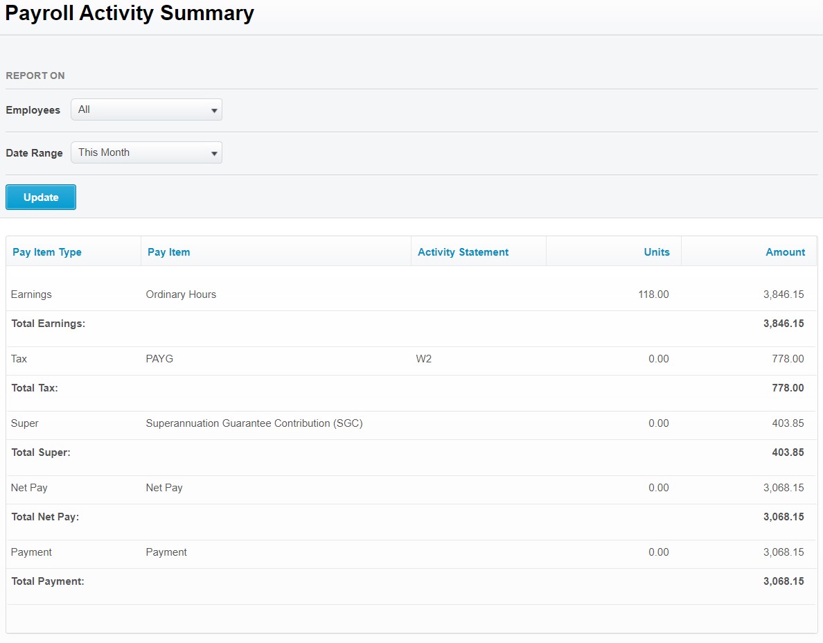 Bookkeeping Xero Payroll Summary Sample