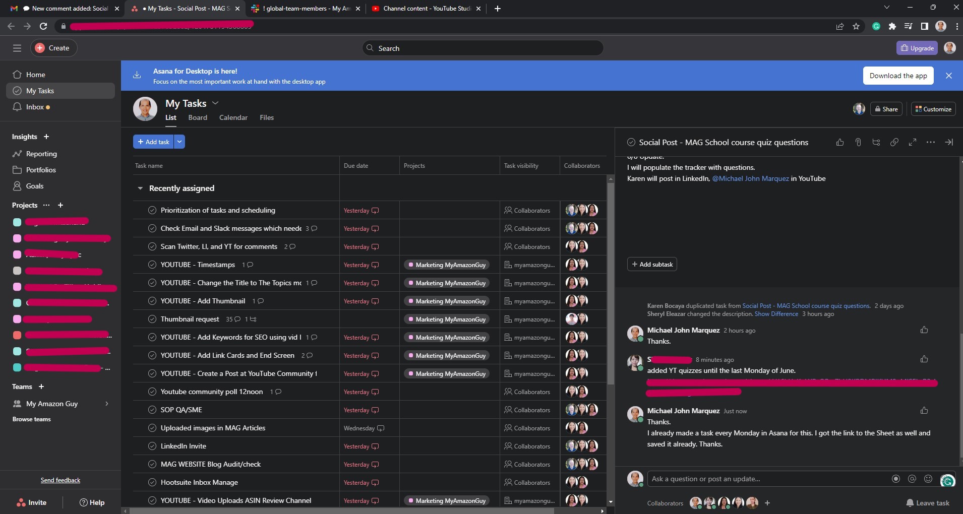 Used Asana App for organizing tasks and tracking.