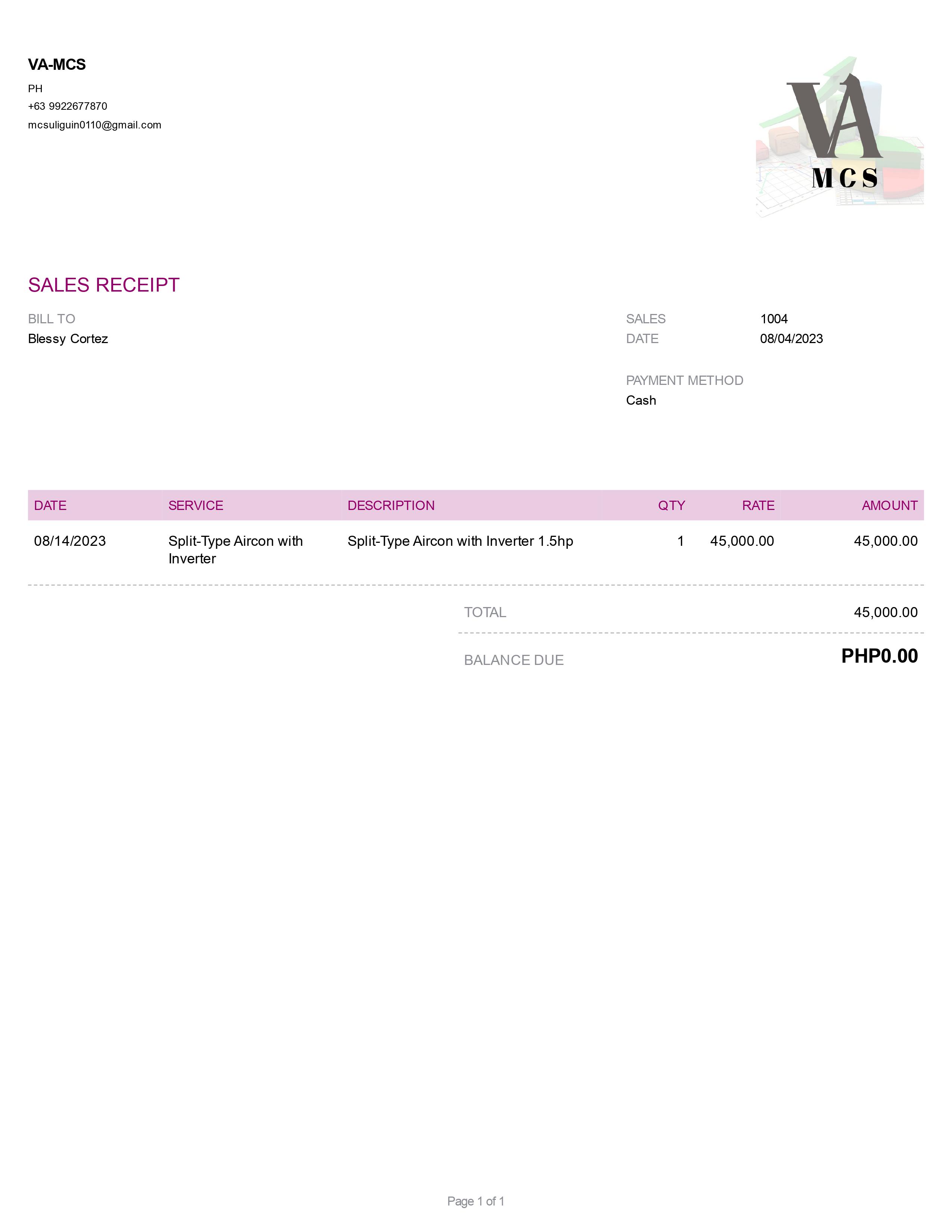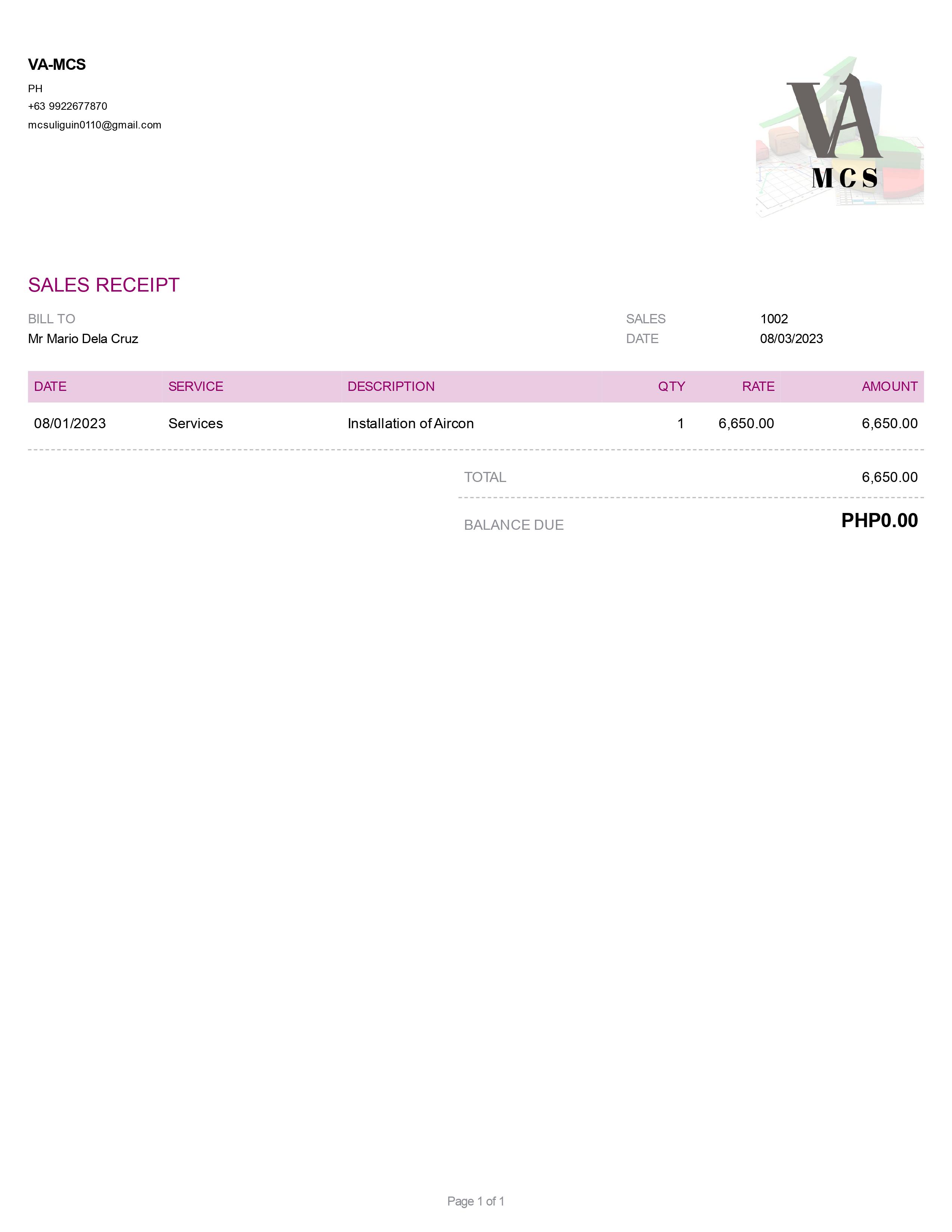 Sales Receipt 1 (Bookkeeping)