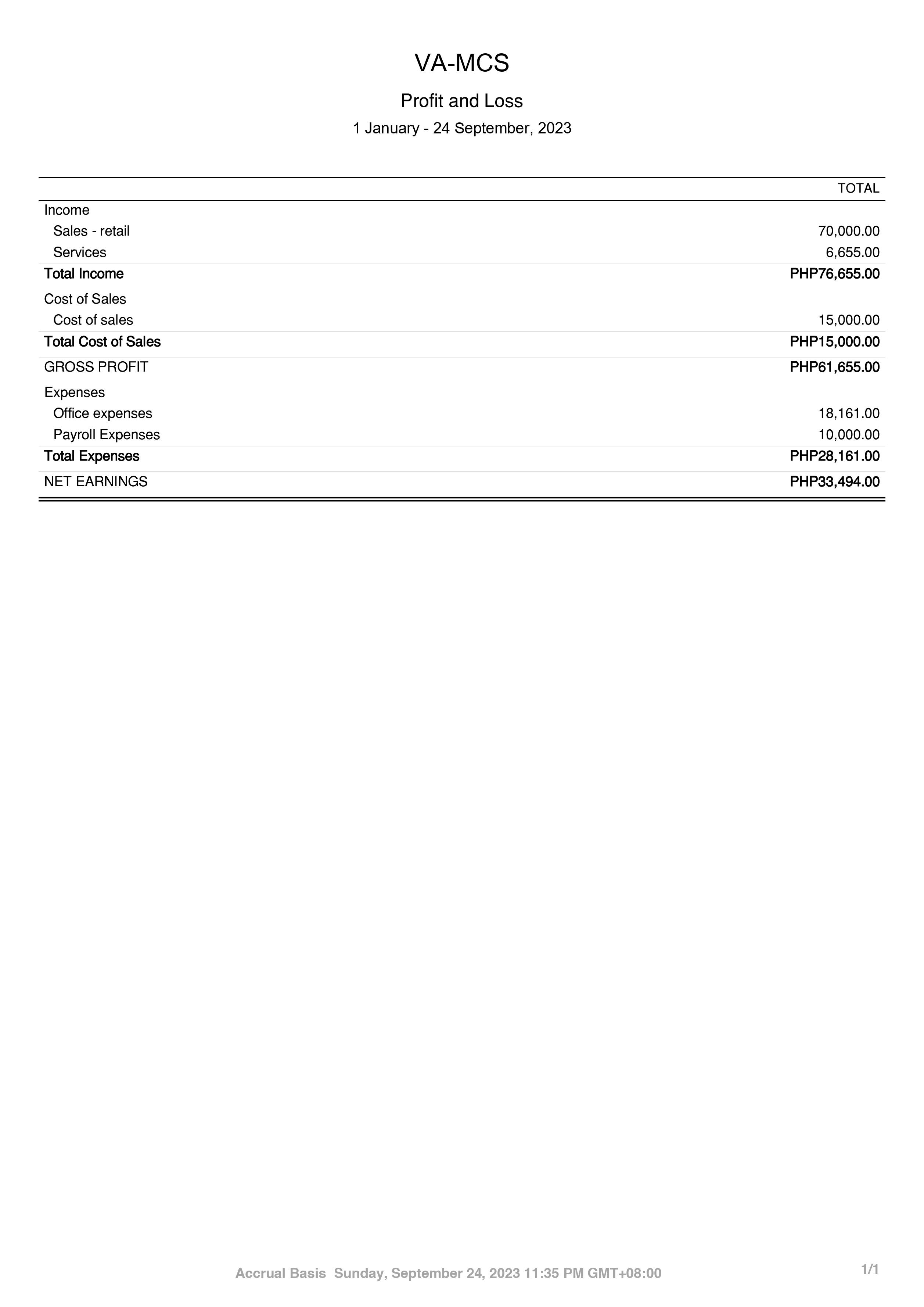 Profit & Loss- Accrual (Bookkeeping)
