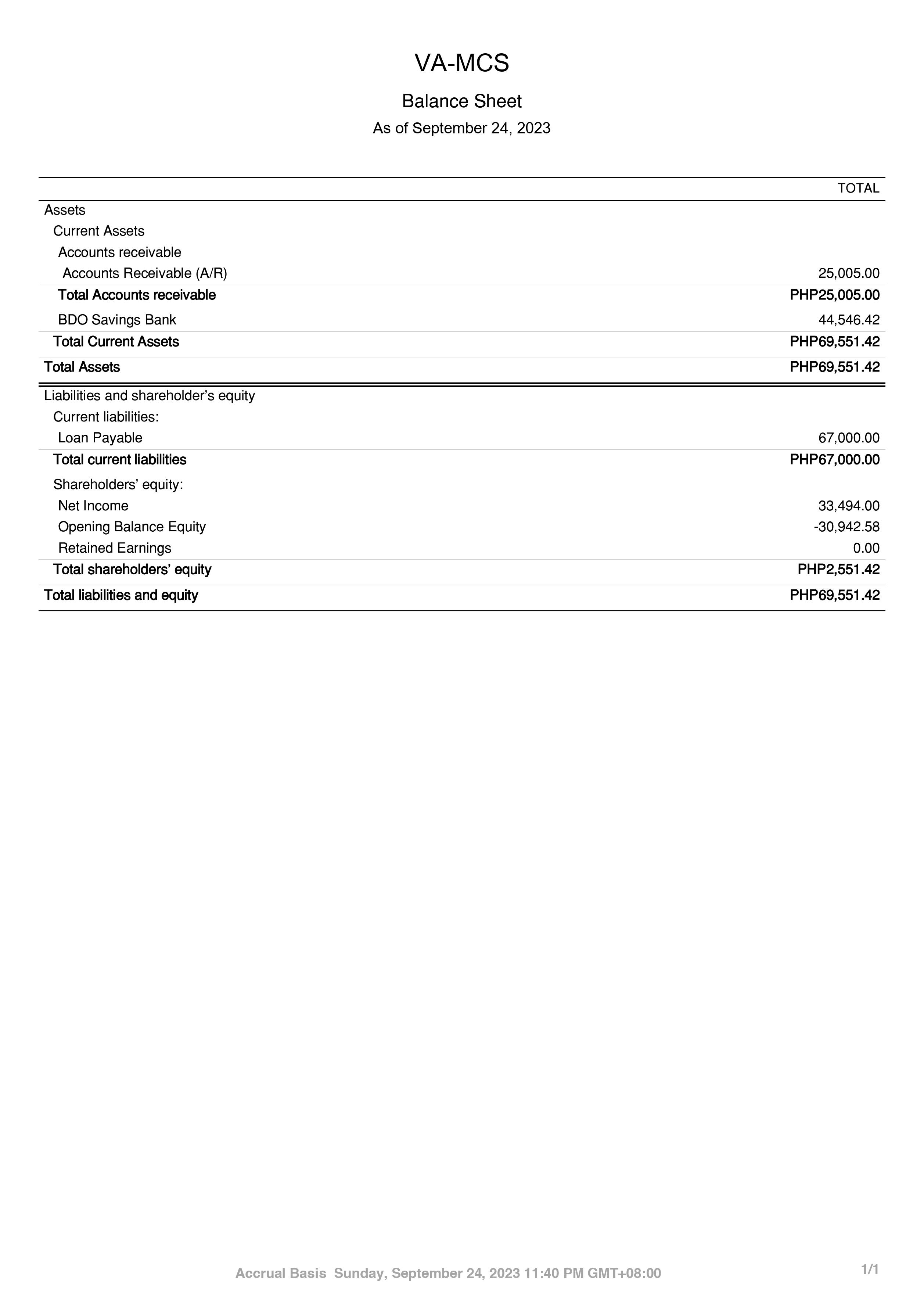 Balance Sheet Report (Bookkeeping)