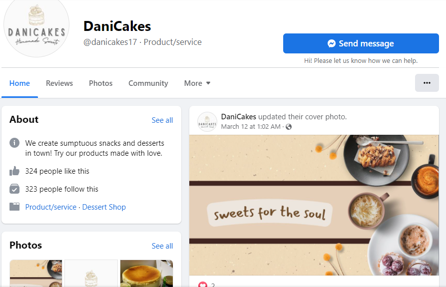 Social Media Manager, DaniCakes (323 Followers), 2020