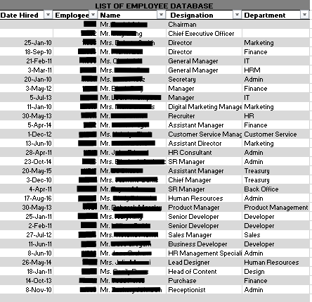 List Of Employee Database