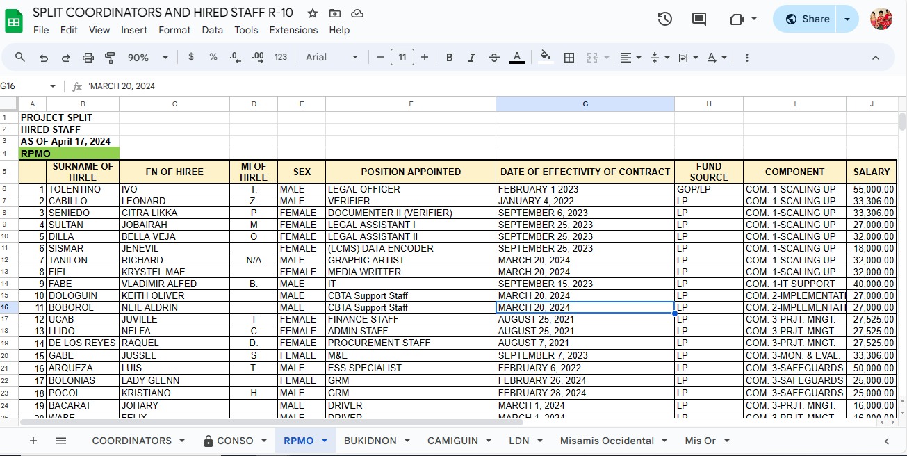 As the Admin Support Staff one of my responsibilities is to gather information of all hired staff under our project.