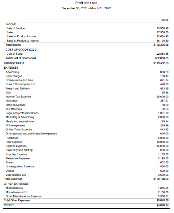 Profit and Loss Report