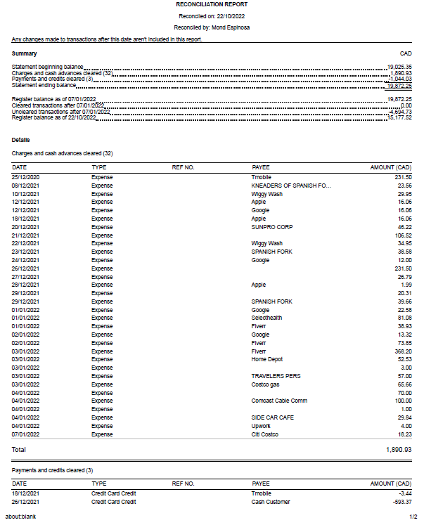 Reconciliation Report page 2/2