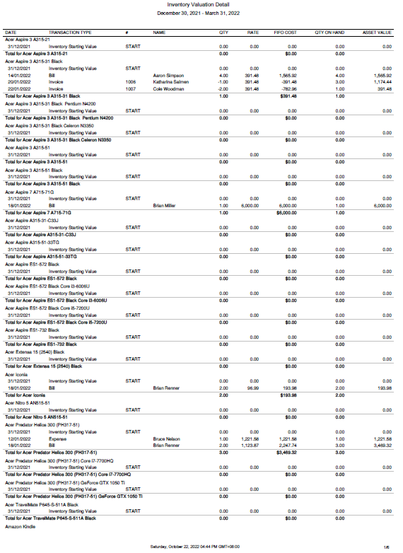 Inventory Valuation Detail
