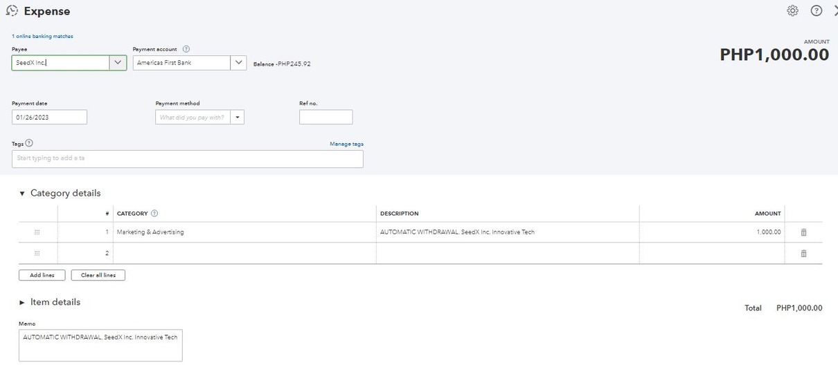 Expense Management – Tracked and categorized expenses to maintain accurate and organized financial records.