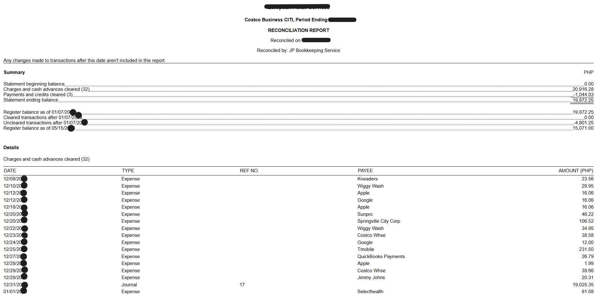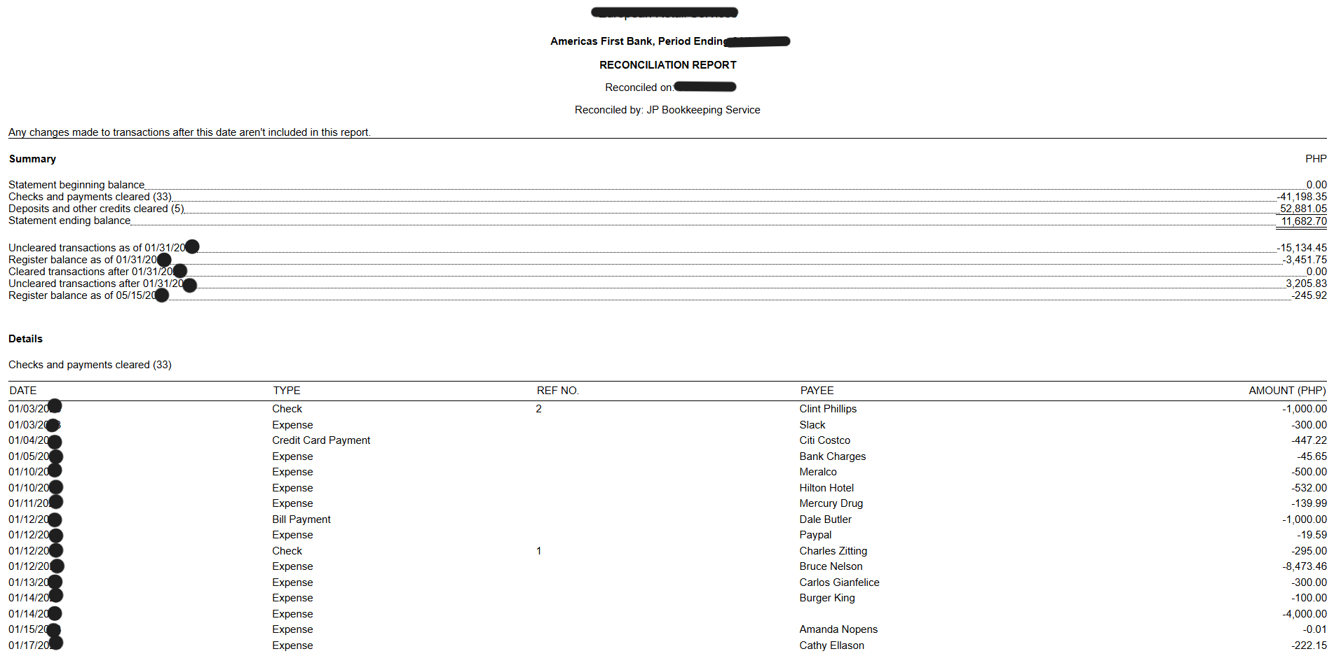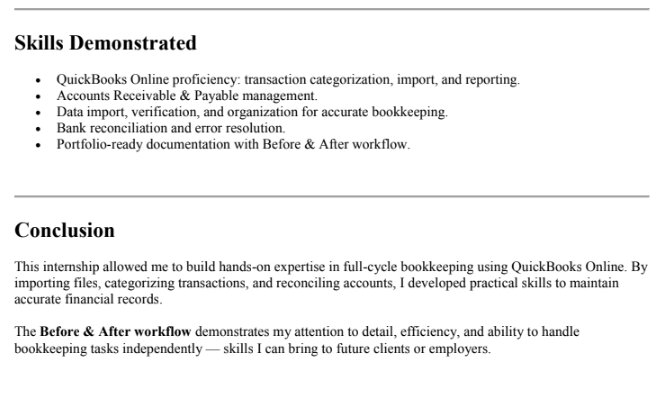 Bank Reconciliation – Ensured accurate and up-to-date records by reconciling bank and credit card accounts and resolving discrepancies.