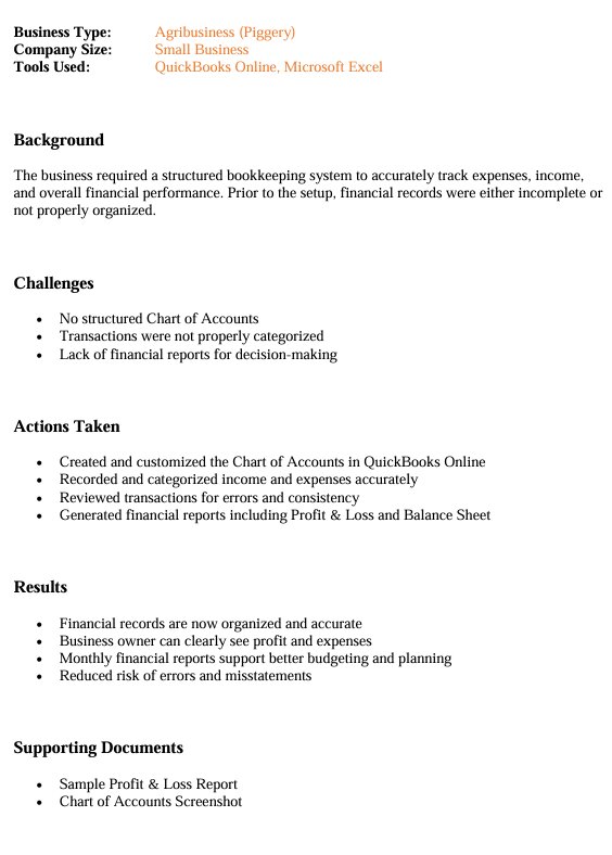Management Reports – Created clear and accurate financial summaries (P&L, Balance Sheet, Cash Flow) to support informed business decisions.